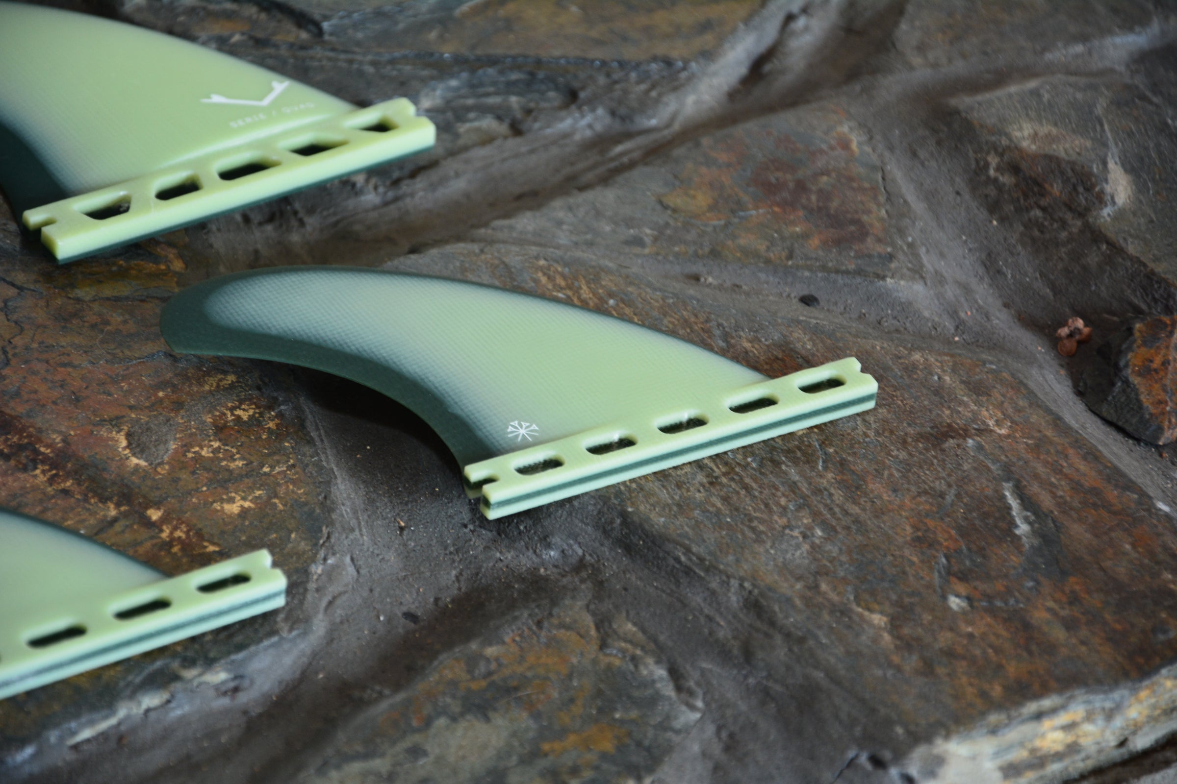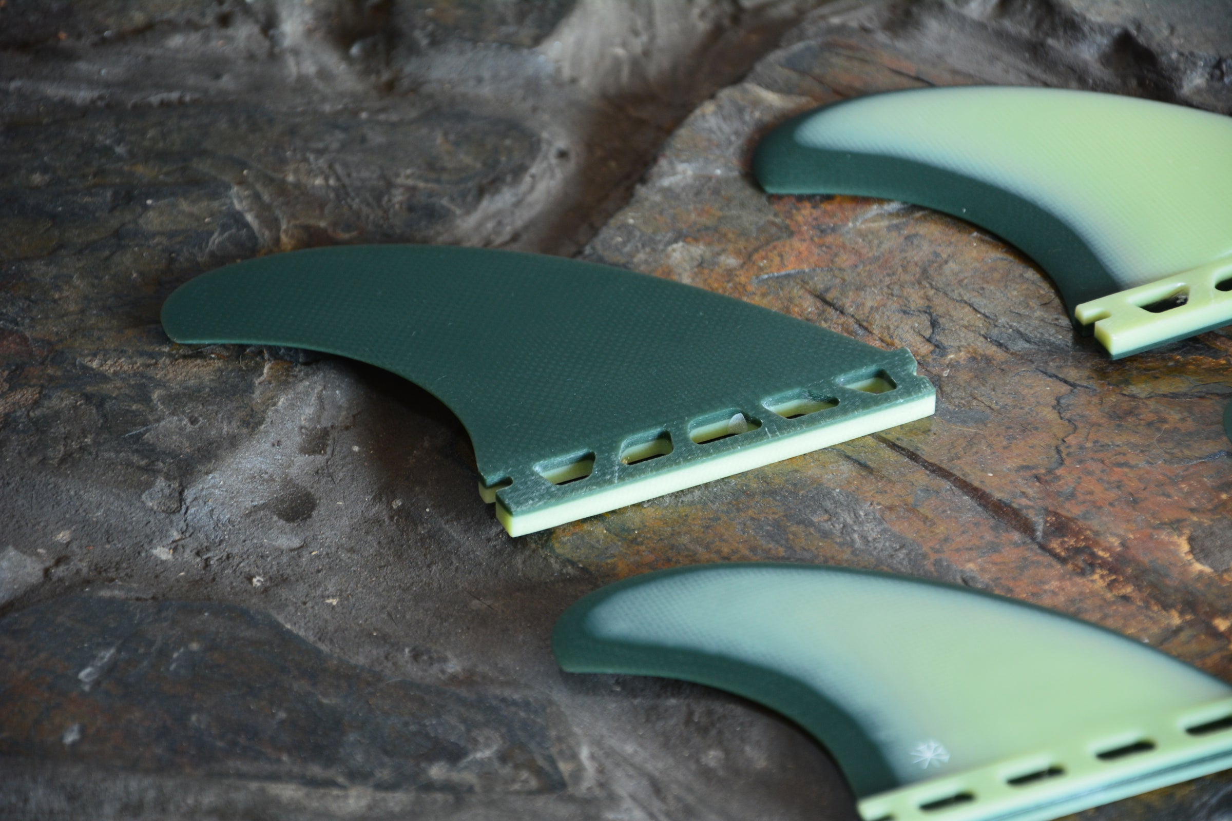 El par de quillas delantero de gran tamaño, combinado con la distribución complementaria del área trasera, proporciona estabilidad, velocidad y control... tres factores importantes a la hora de surfear olas grandes. La sólida construcción de fibra de vidrio y las láminas especialmente diseñadas, logran que estas quillas sean confiables cuando más necesitas contar con ellas.